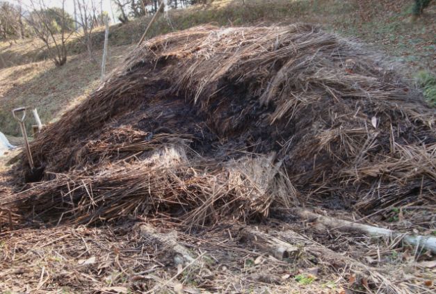そのつどカヤをいれていた土は黒くなり、