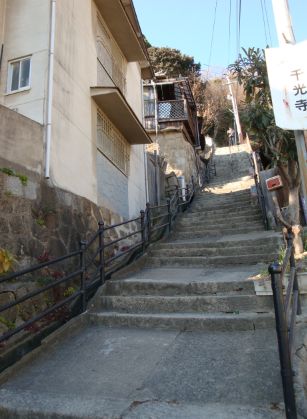 下りは細い階段をおりてゆきました。