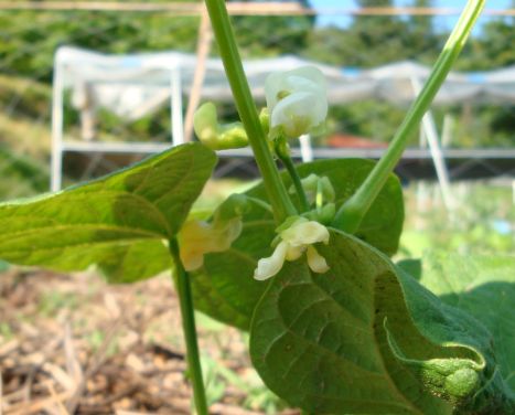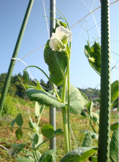 スナップエンドウ、インゲン こぼれ種から勝手に育った春菊。 りっぱに育ちます。