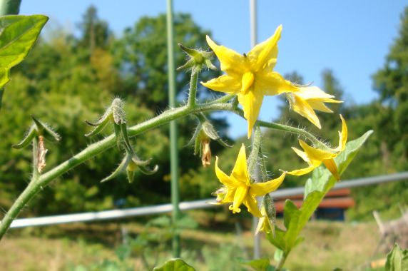 好天が続き、やさいたちも元気に育っています。 畑は花ざかり、もうすぐ一斉に収穫できそうです。 メジャーなところできゅうり。 なすびと下はピーマン トマト 大玉とミニ