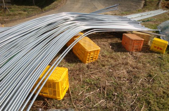 やっと少し暖かくなってきました。 なんだかんだとパソコン仕事が続いたり、 日曜日は消防の出初式だったりで、更新が滞っていました。 出初式というと、昨年の騒動が思い出されます。 もう一年たったのですね。 http://ehimeutiko.bijual.com/Date/20110221/1/ 今年雪は少なかったですが、晴れの日が続かず、 畑作業が遅れ気味でしたが、なんとか今日やっと、 じゃがいもの畝をたて、ほうれん草、ミズナ、ラデッシュ、 こまつなの種を播きました。 まだ少し早いのですが、ビニールをベタがけしての挑戦です。 困っていることがひとつ。 まだハウスが完成しません。 一月から、 ずっとこのままです。 定植の準備はばんたん。 最初は11月に建つ予定が12月になり、年をこえ、 まだ完成しません。 ずっと作付けをストップし、畑を空けていたのですが。 この前の説明会では、20日の週と言っていて、 今週木か金にとなり、とりあえず材料だけは届くそうです。 作業は来週? 土日は休みですもんね。 とっくに定植が 終わっているはずの レタスの苗です。 夜間温度を5度まで下げて、 成長を止めているのですが。 一度成長を止めた影響と、根の巻きすぎ、 定植にはまだ一週間はあるので根傷みは大丈夫なのか。 どうなることやら、 誰が責任とってくれるものやら・・・ |